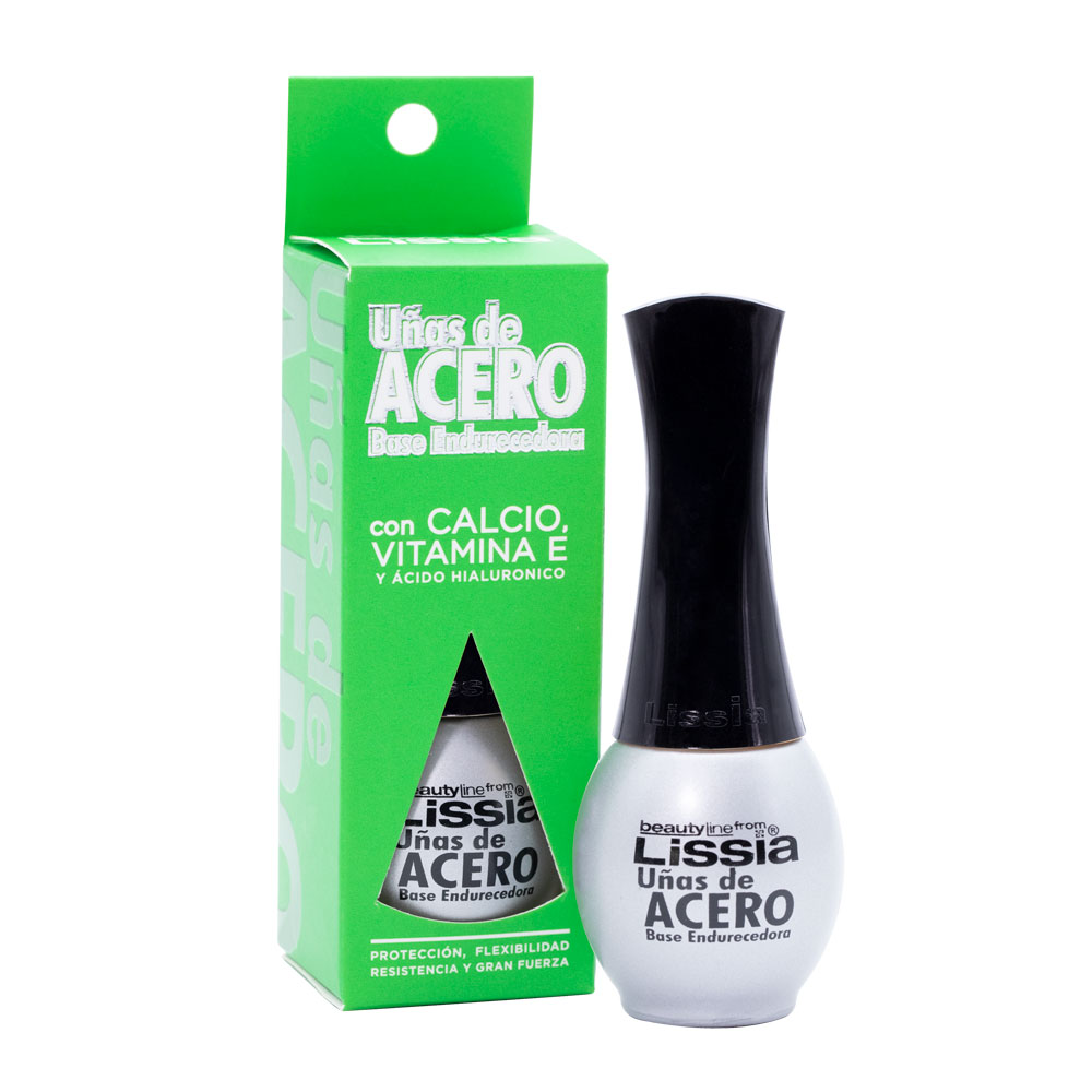 Disfruta de uñas más fuertes, flexibles, con un crecimiento mucho más rápido gracias a la base Uñas de Acero, logrando que tus uñas luzcan saludables, con brillo y más resistentes.