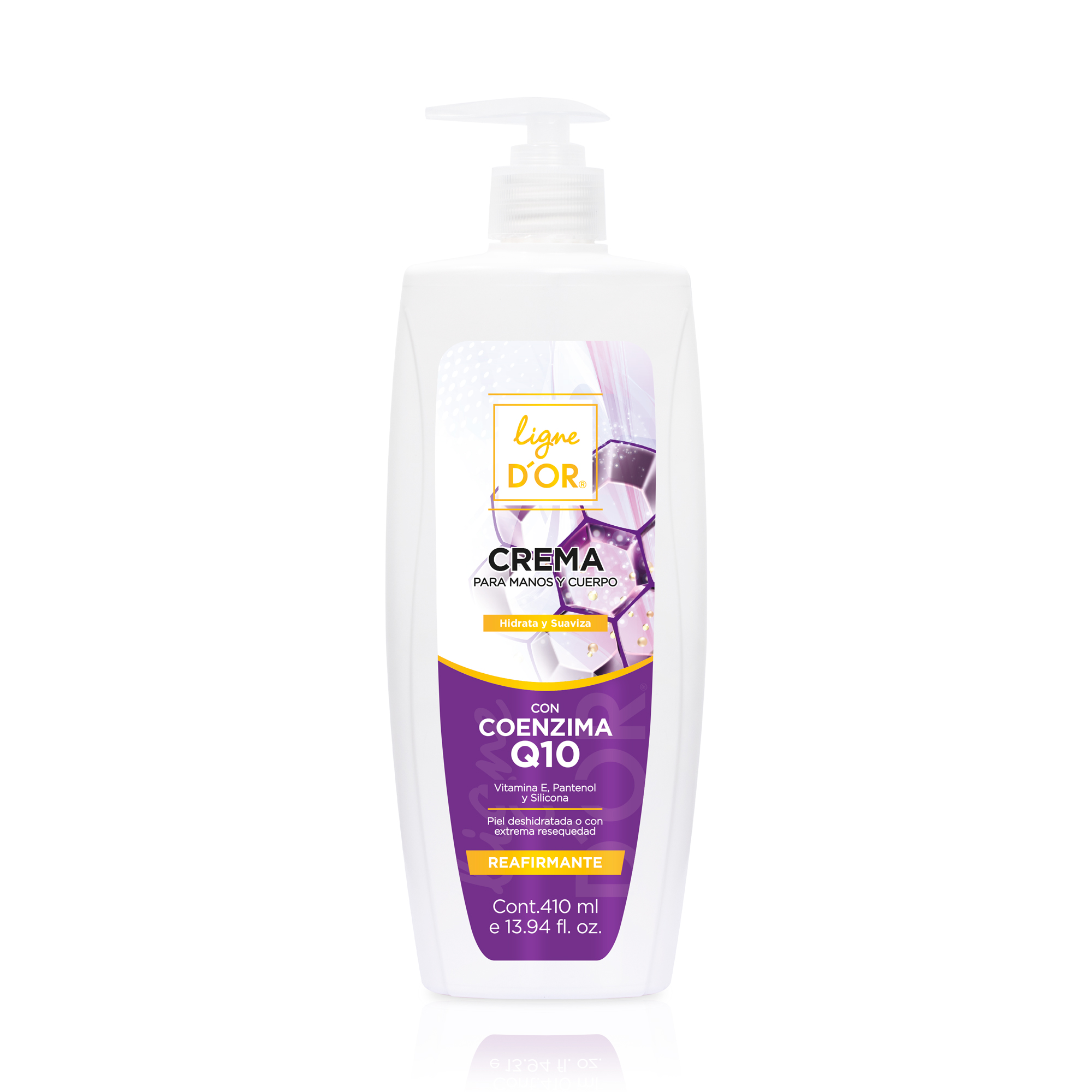 Disfruta de una crema perfumada para manos y cuerpo que combina los extractos de Q10, Pantenol, Vitamina E y Filtro Solar, previniendo así el envejecimiento prematuro y dejándola tan suave que la amaras desde la primera aplicación.